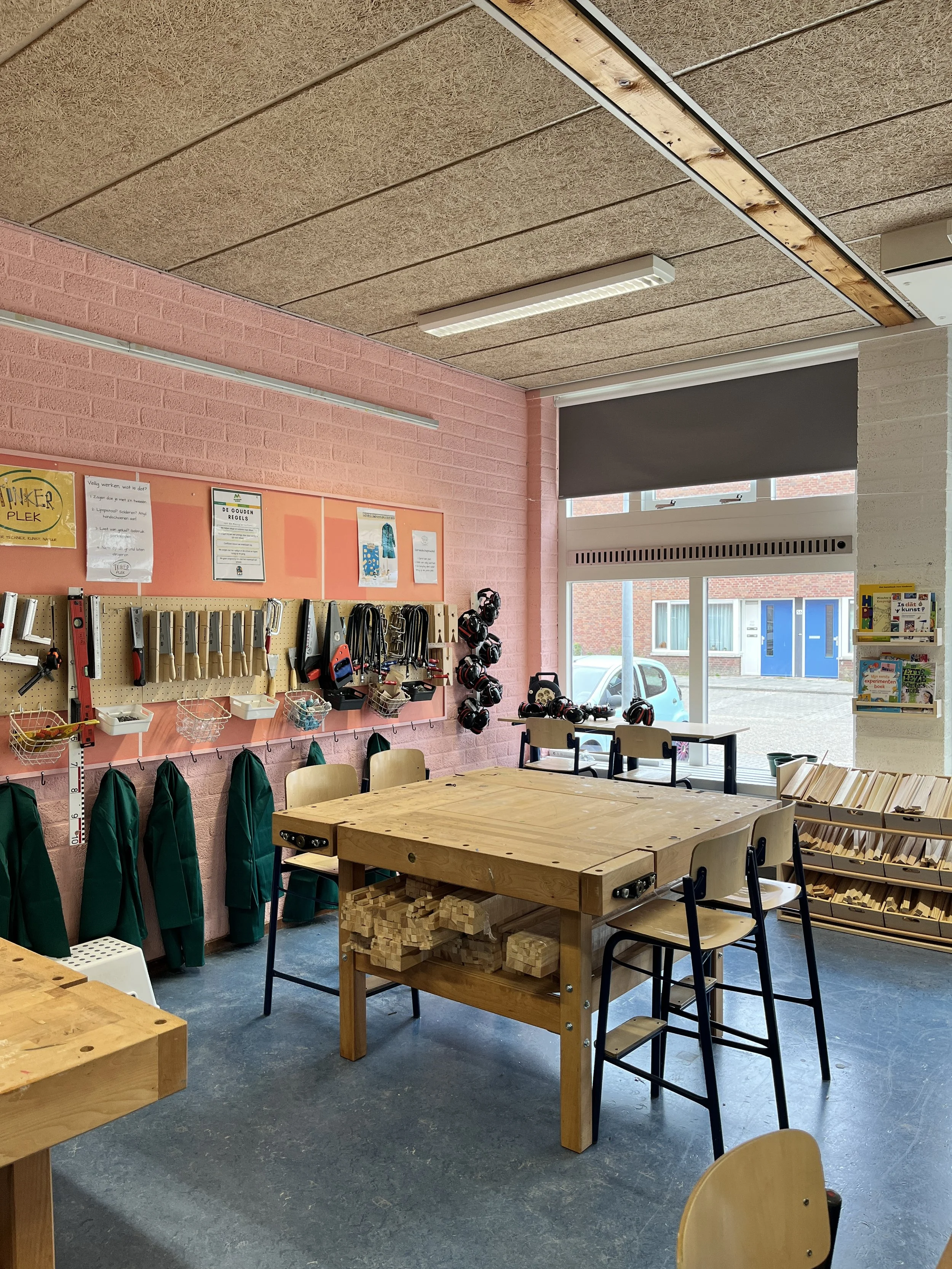 Tinkerplek; voor de Maasplein school is de bestaande techniekruimte opnieuw ingericht en aangevuld, zodat de leerlingen & docenten gemakkelijk zelfstandig aan de slag kunnen in dit lokaal. Aansluitend heb ik hier nog bijna twee jaar als vakdocent gewerkt in diezelfde ruimte